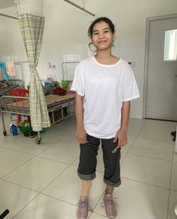 Câu ChuyệnBảo Châu 6 tuổi nhưng nhỏ con hơn nhiều so với các bạn. Ngoài dị tật thiếu đốt xương sườn, bé bị khoèo tay và thiếu ngón cái gây khó khăn trong việc sinh hoạt của bé.